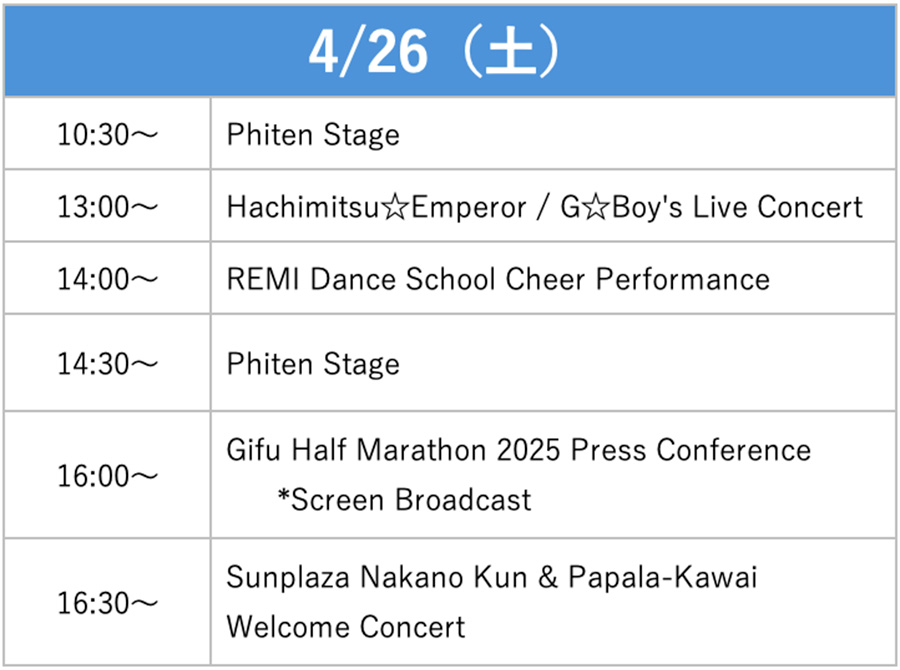 A variety of stage events will energize the venue during the two-day Marathon EXPO held at Deai Dome on Saturday, the 26th and Sunday, the 27th!