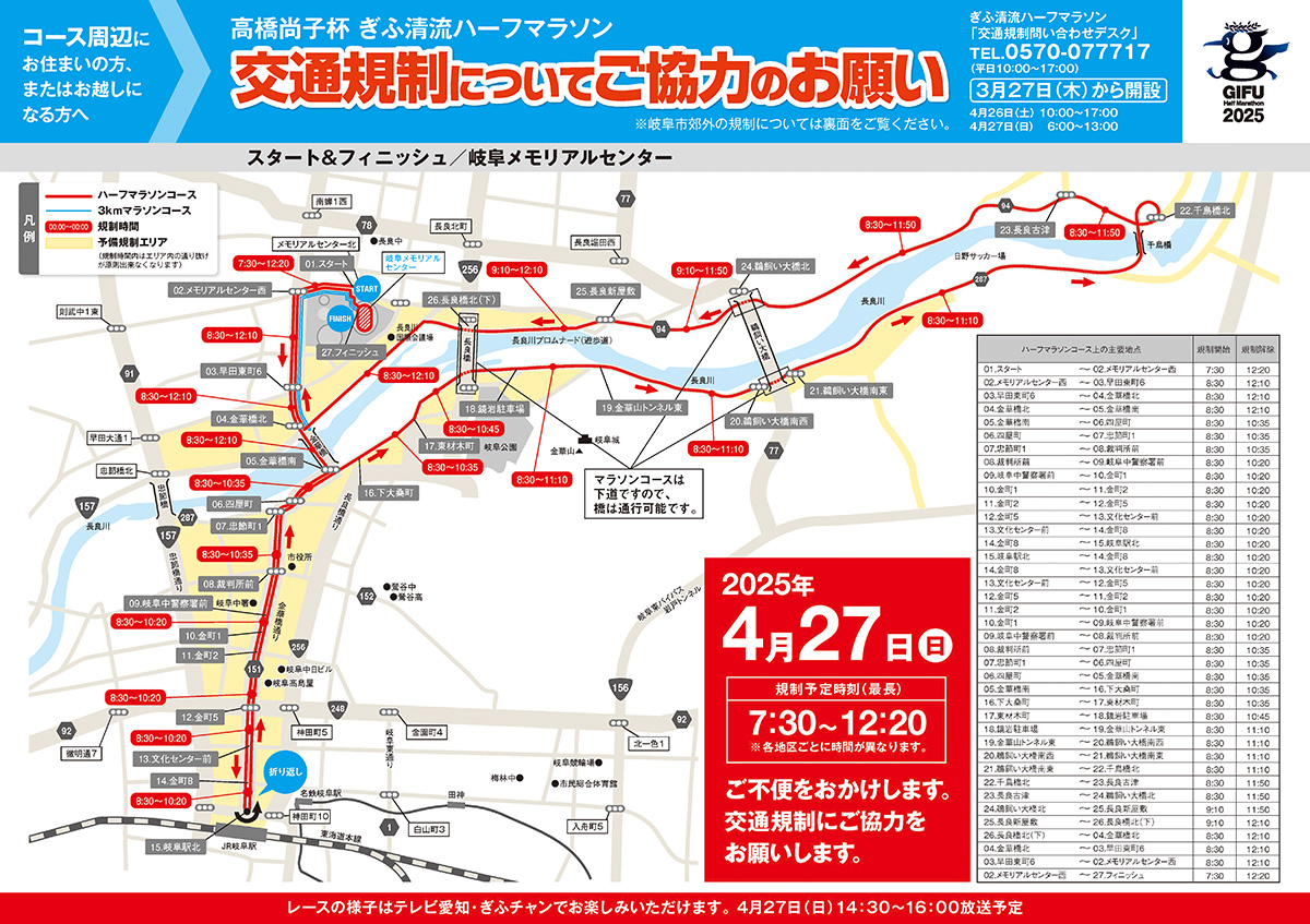 大会当日(2025年4月27日)の交通規制情報を公開しました。