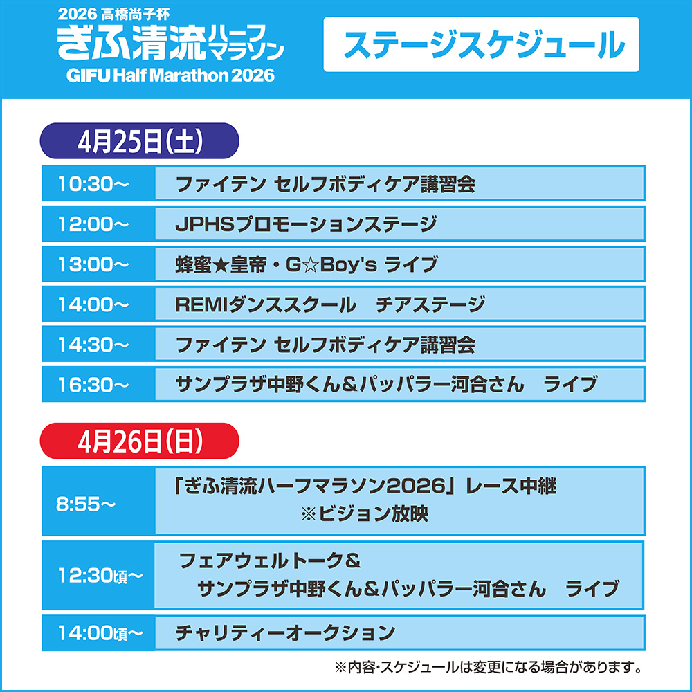25日(土)、26日(日)の2日間、で愛ドームで開催する「マラソンEXPO」では、さまざまなステージイベントが会場を盛り上げます!