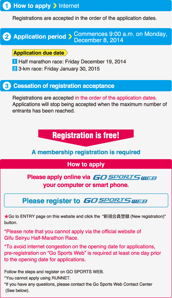 “Gifu Seiryu Half Marathon Entry Center” in Go Sports Web Entry Center